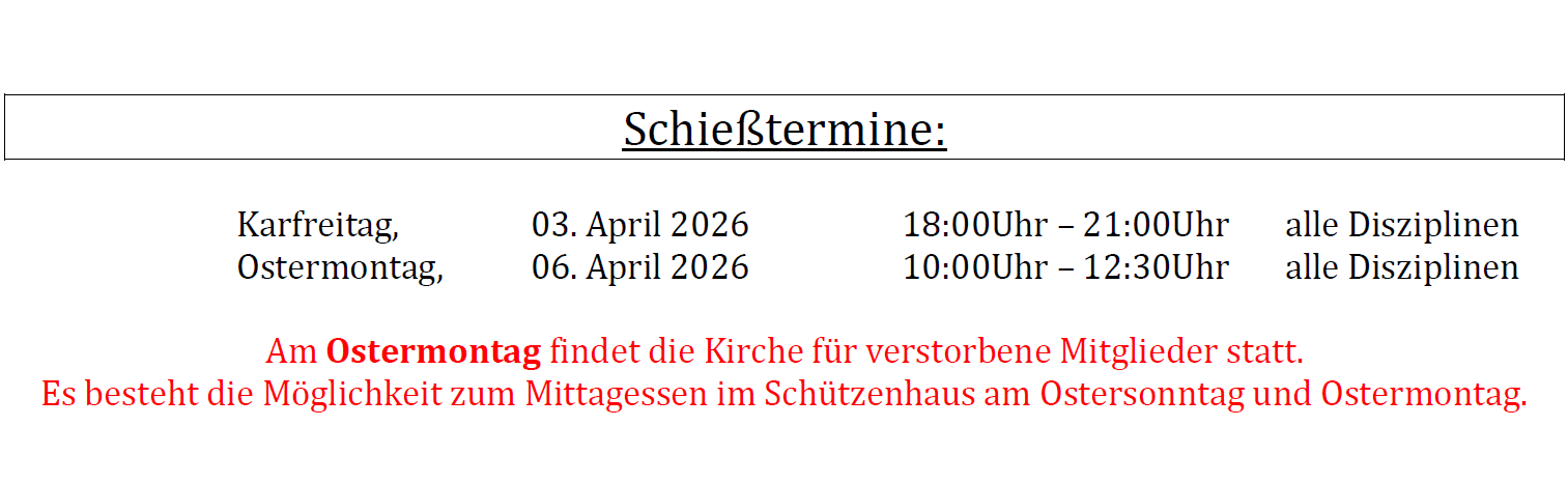 Wir freuen uns auf euer kommen und wünschen euch allen "gut Schuss".