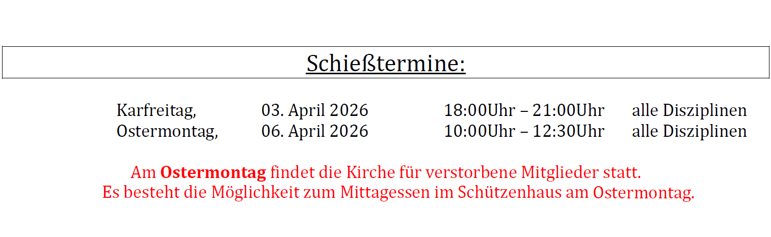Wir freuen uns auf euer kommen und wünschen euch allen "gut Schuss".
