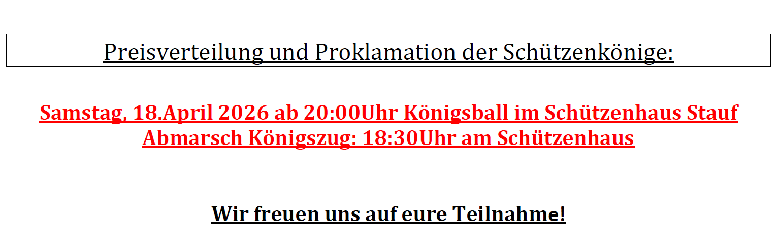 die Königsfeier ist der sportliche Höhepunkt unseres Vereins und wir bewegen uns mit großen Schritten darauf zu.